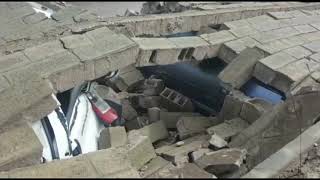 السيارات تحت رحمة انهيار حائط بليساسفة بالبيضاء
